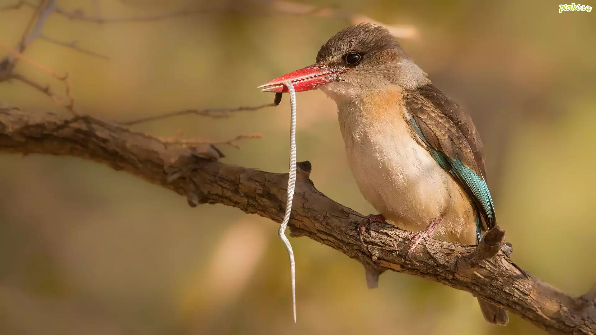 Ptak, Łowiec brązowogłowy, Gałąż, Mały, Wąż
