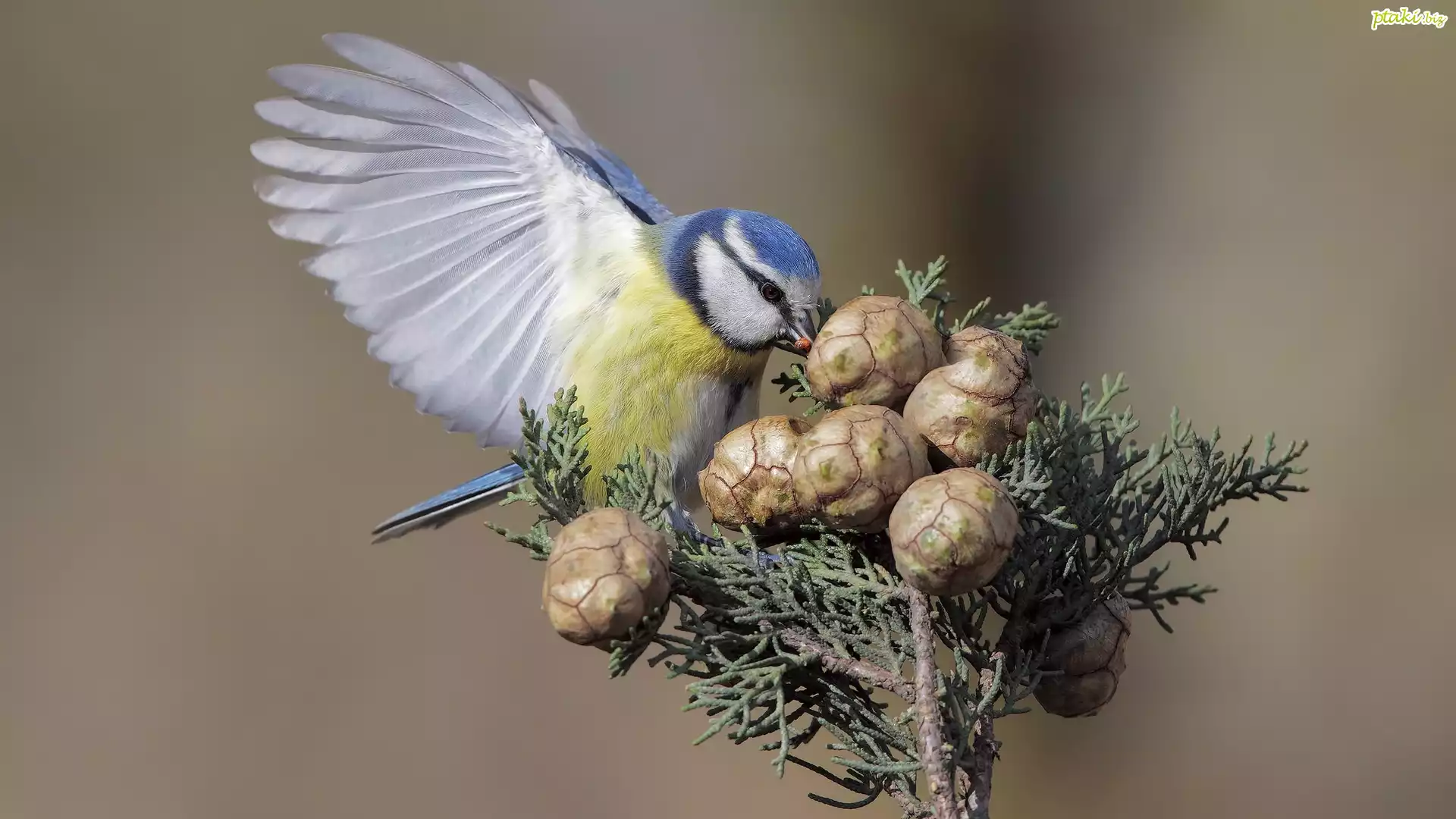 Ptak, Modraszka zwyczajna, Sikora modra, Szyszki