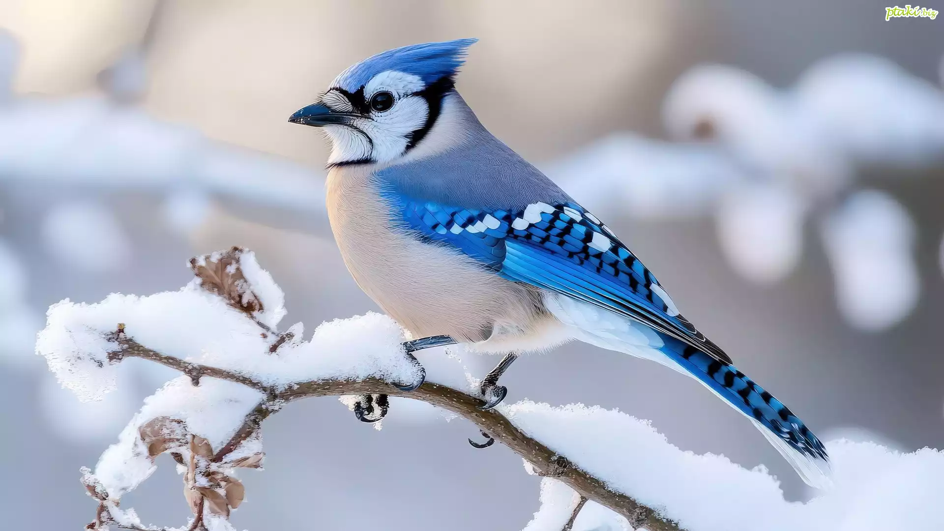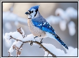 Zima, Ptak, Modrosójka, Ośnieżona, Gałązka