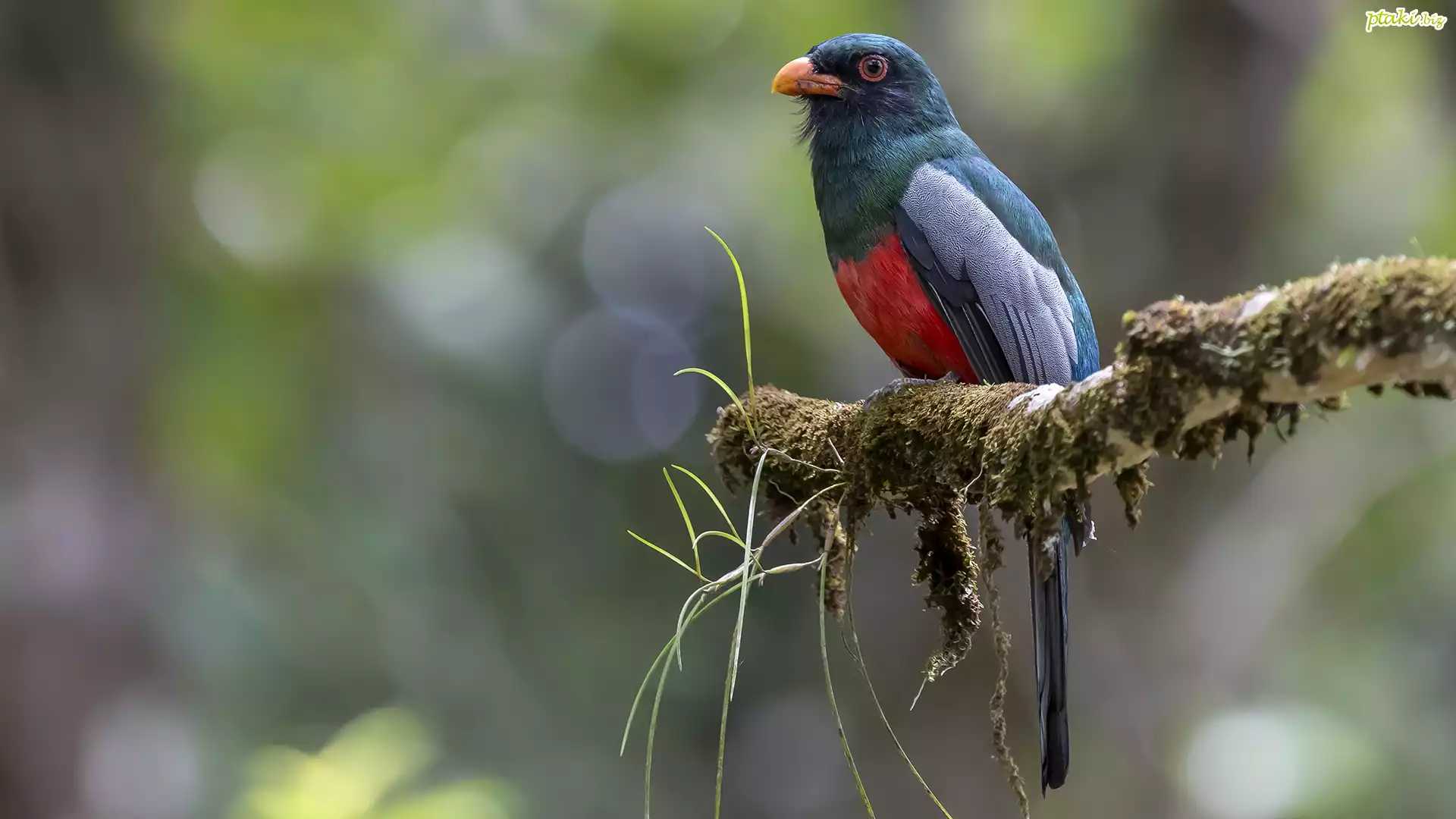 Ptak, Trogon krasnodzioby, Omszony, Konar