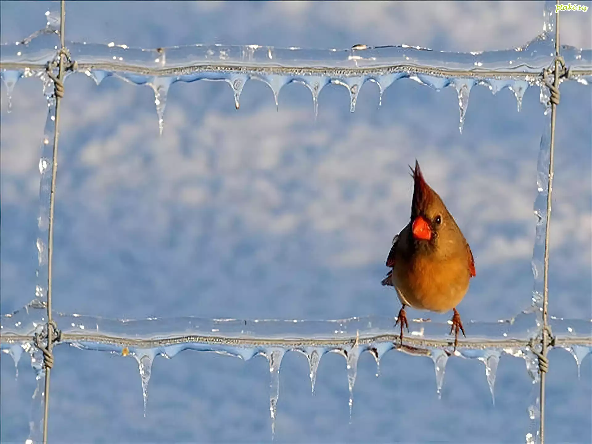Ptak, Kardynał, Płot, Lód