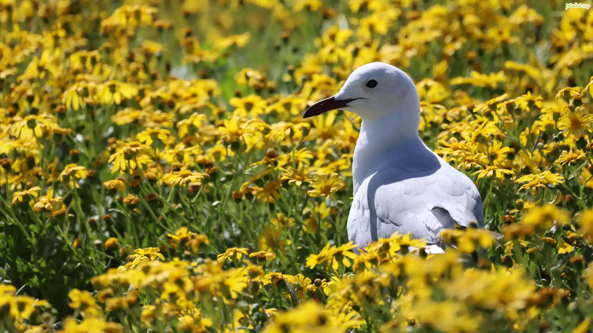 Mewa Hartlauba, Mewa, Ptak, Kwiaty, Pole
