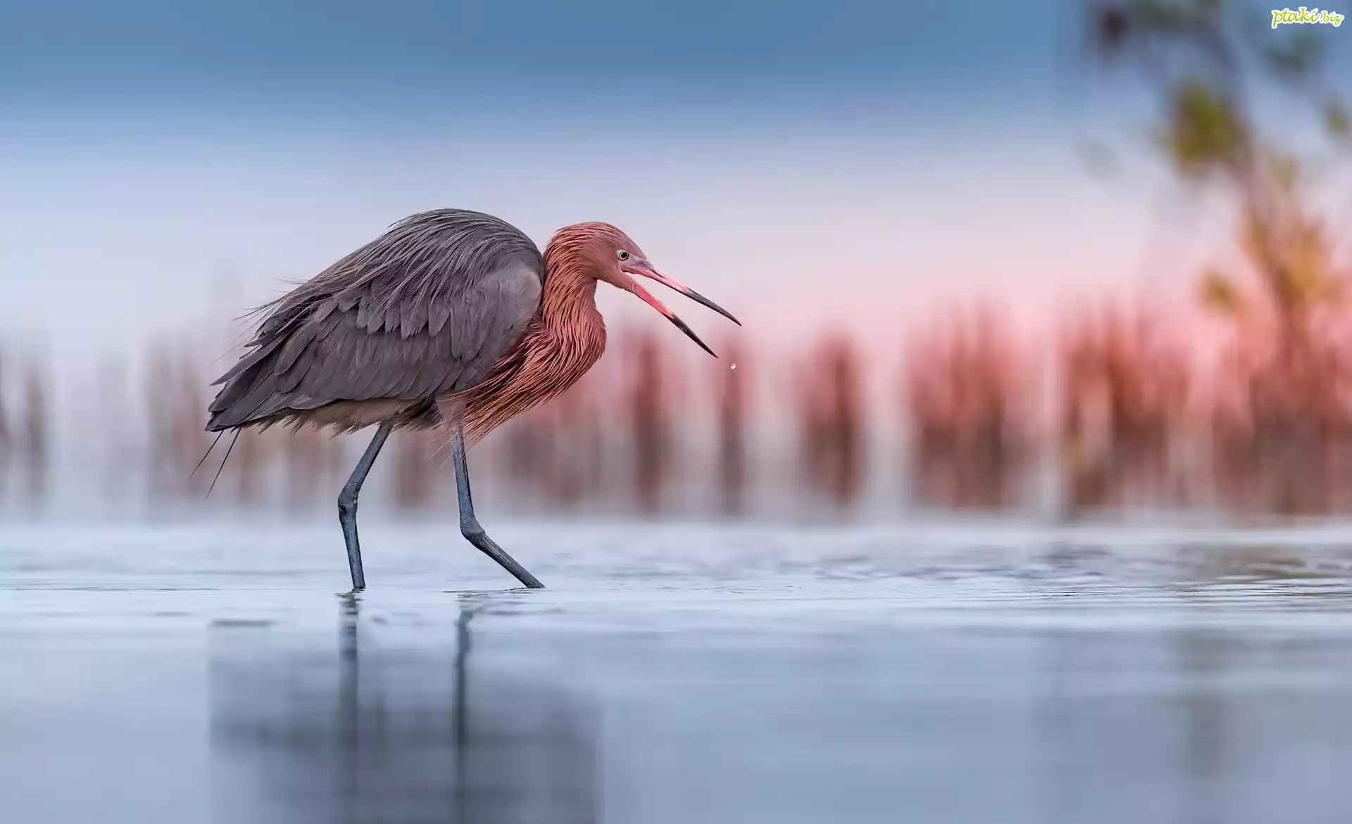 Ptak, Czapla rdzawoszyja, Woda, Kropla