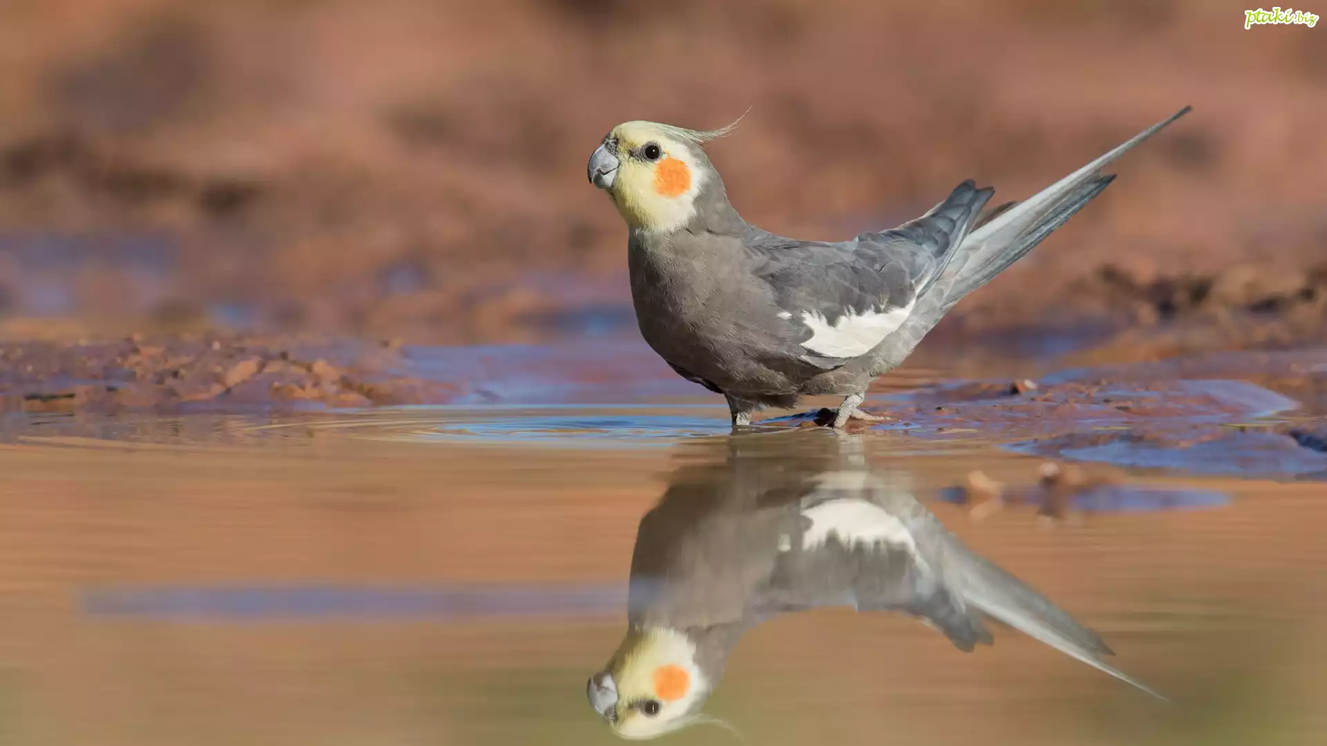 Ptak, Papuga, Nimfa, Woda, Odbicie