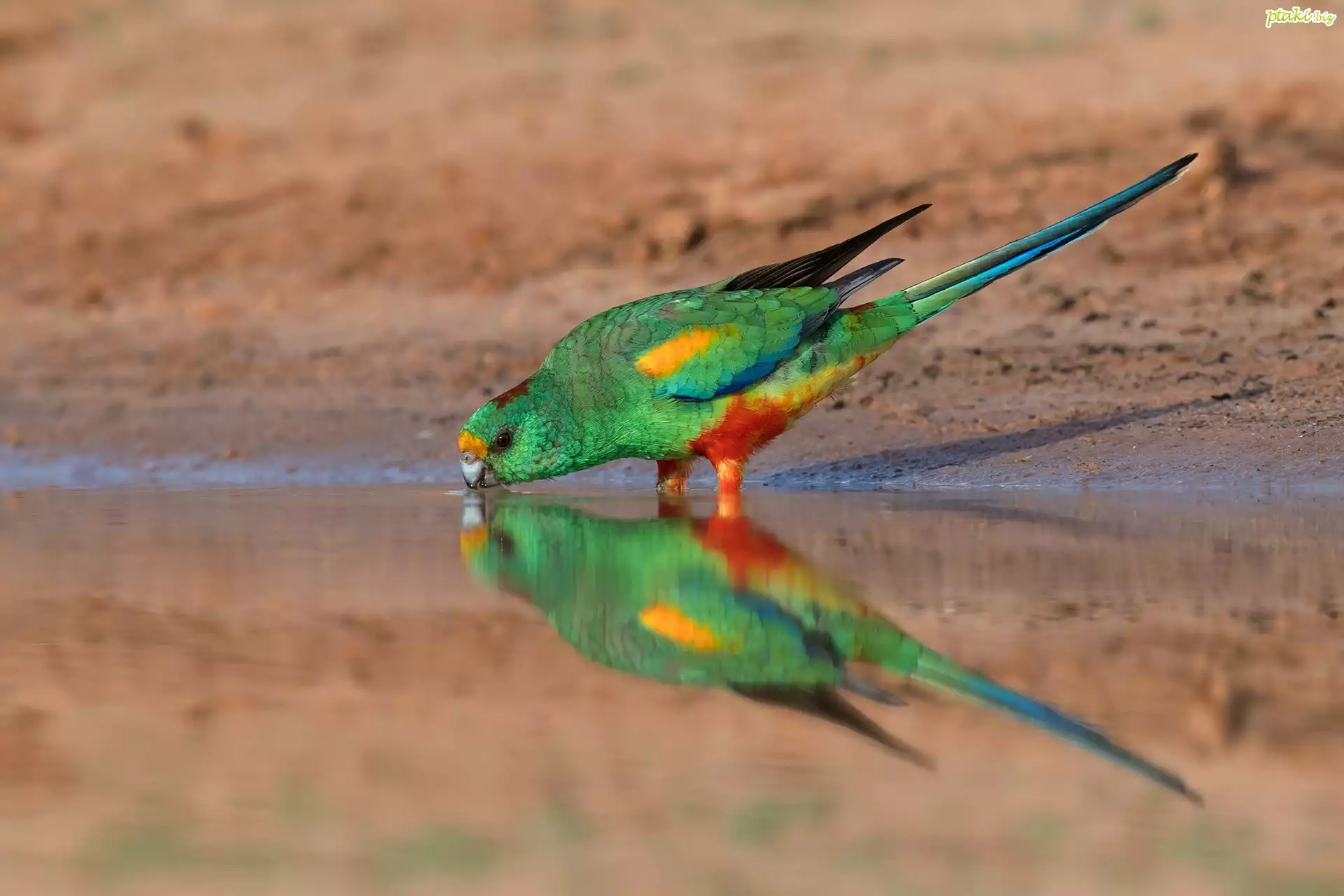 Ptak, Papuga, Świergotka wielobarwna, Woda, Odbicie