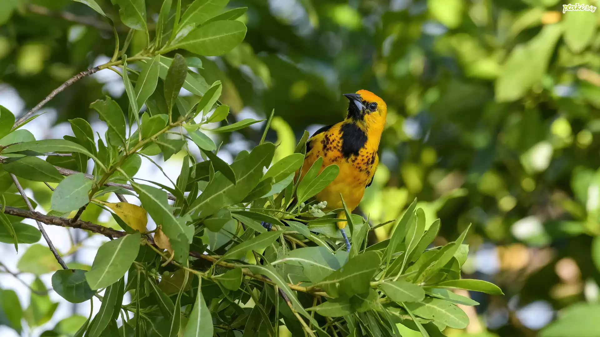 Ptak, Kacyk plamisty, Gałązki, Zielone, Liście
