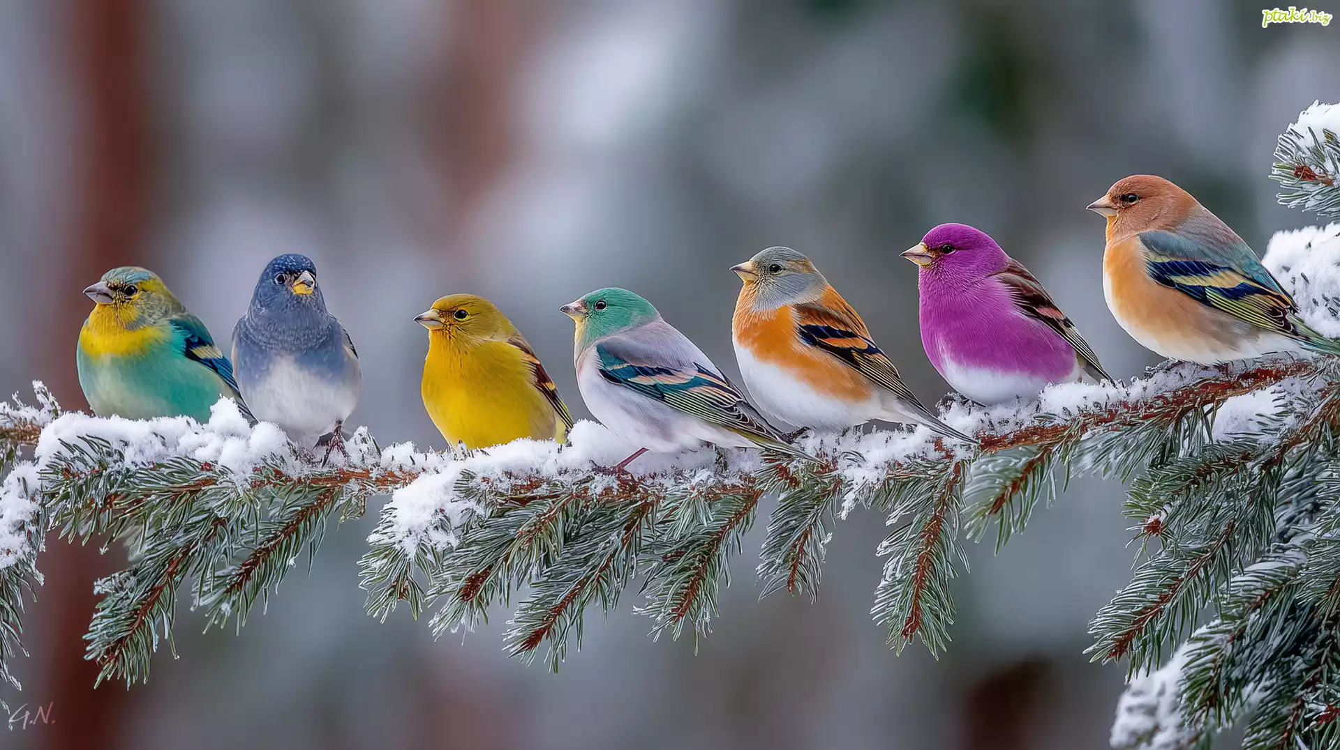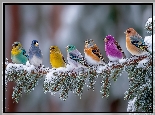 Kolorowe, Ptaki, Gałąź, Grafika AI