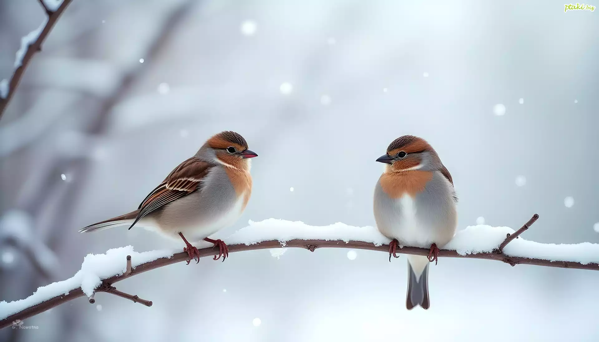 Dwa, Ptaki, Ośnieżona, Gałązka, Grafika