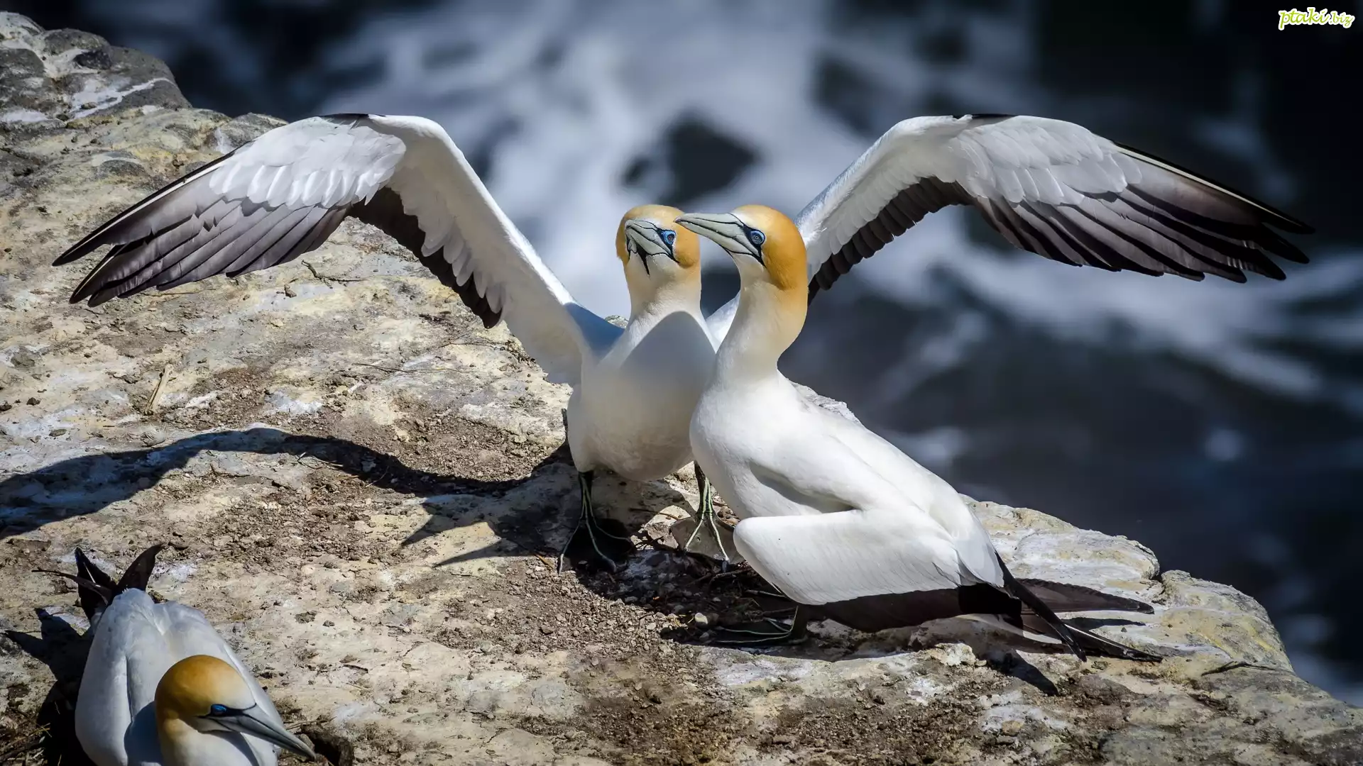 Dwa, Głuptaki, Kamienie, Krzewy Głuptaki, Roślinność, Rozmycie Głuptak, Australijski Głuptaki, nogi, niebieskie Ptaki, Głuptaki australijskie, Rozpostarte, Skrzydła Dwa, Głuptaki Niebieskonogie, Kamienie Głuptak Australijski Dwa, Ptaki, Głuptaki australijskie, Woda Głuptaki zwyczajne Latający, Głuptak Głuptaki Głuptak, Australijski
