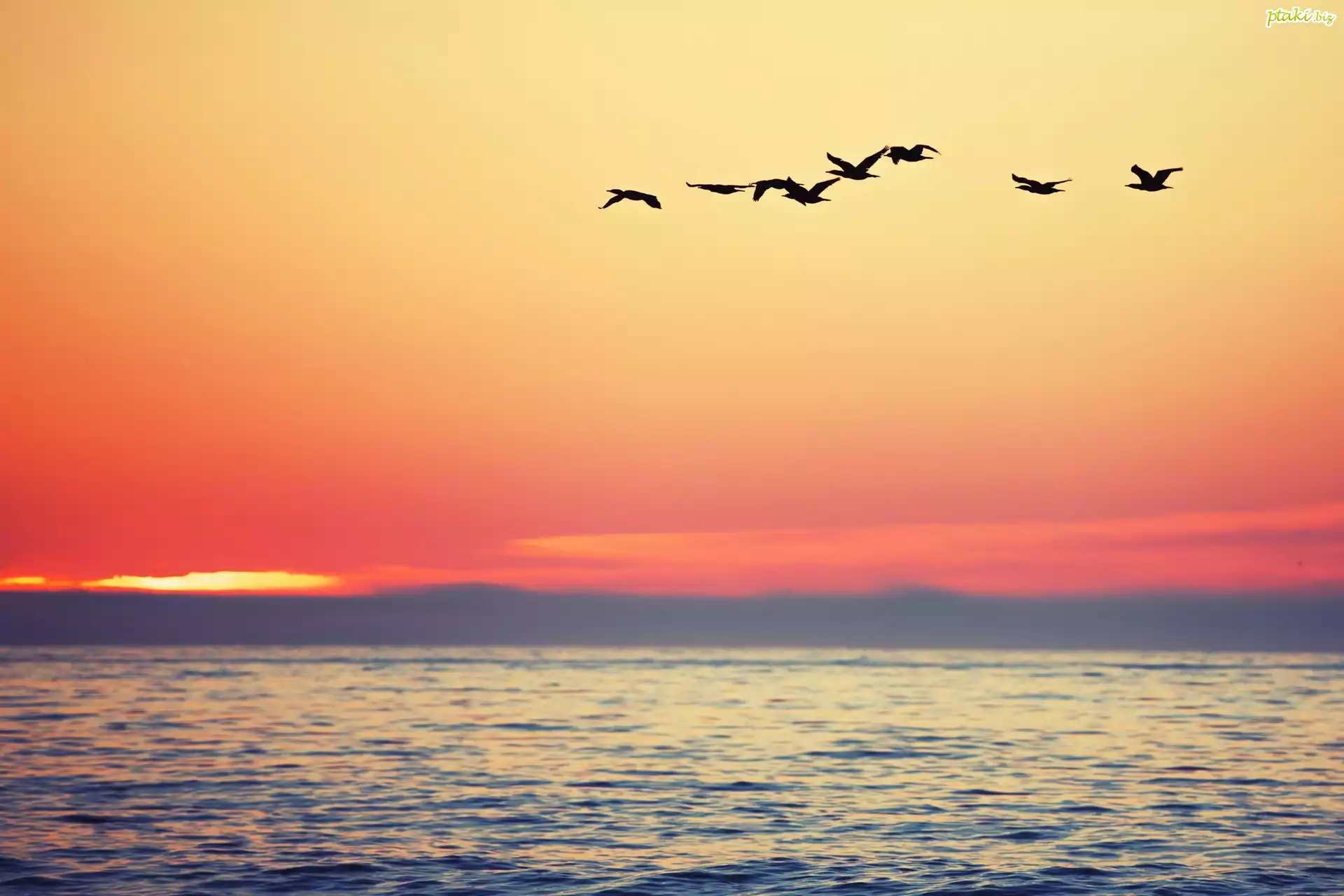 Ptaki, Zachód słońca, Morze