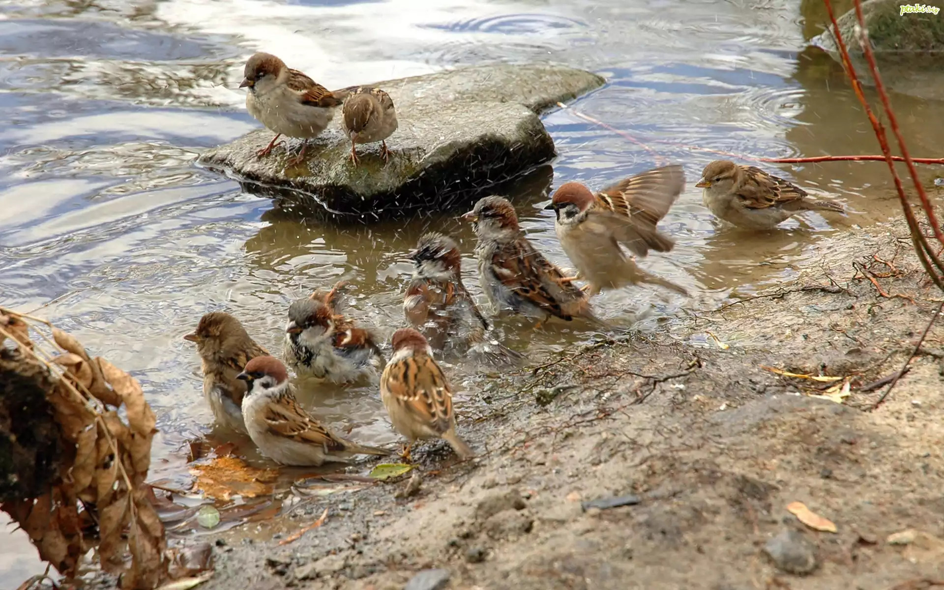 Wróbel Wróbel, Podajnik Ptak, Wróbelek, Gałąz Wróbelek, Gałązka Ptak, Kłoda, Drzewa, Wróbel Dwa, Wróble, Kwitnąca, Gałązka Wróbel, Zima Wróbel, Kąpiel, Kałuża, Woda Wróbel, Gałąź