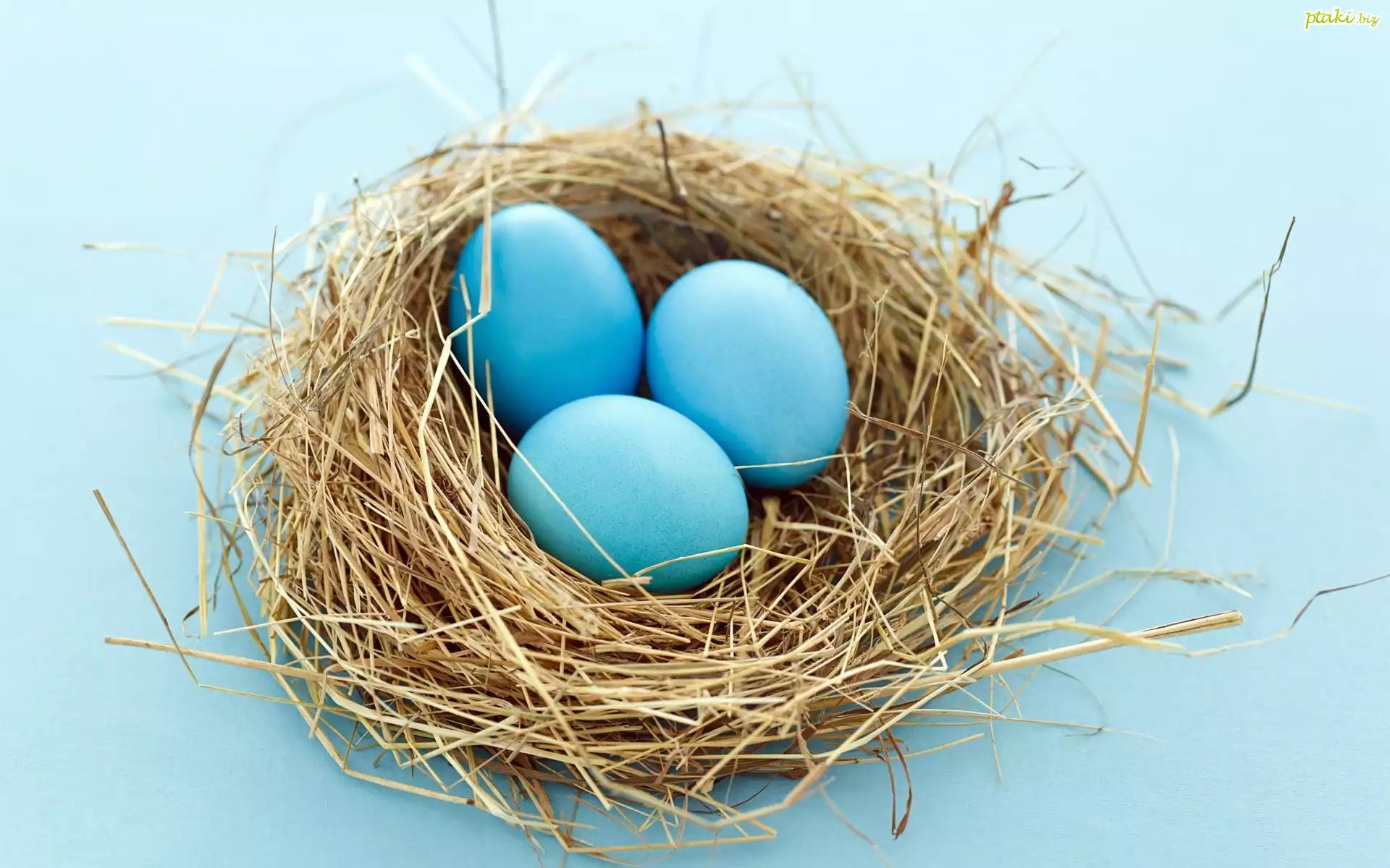 Ptasie, Gniazdo, Niebieskie, Jajeczka
