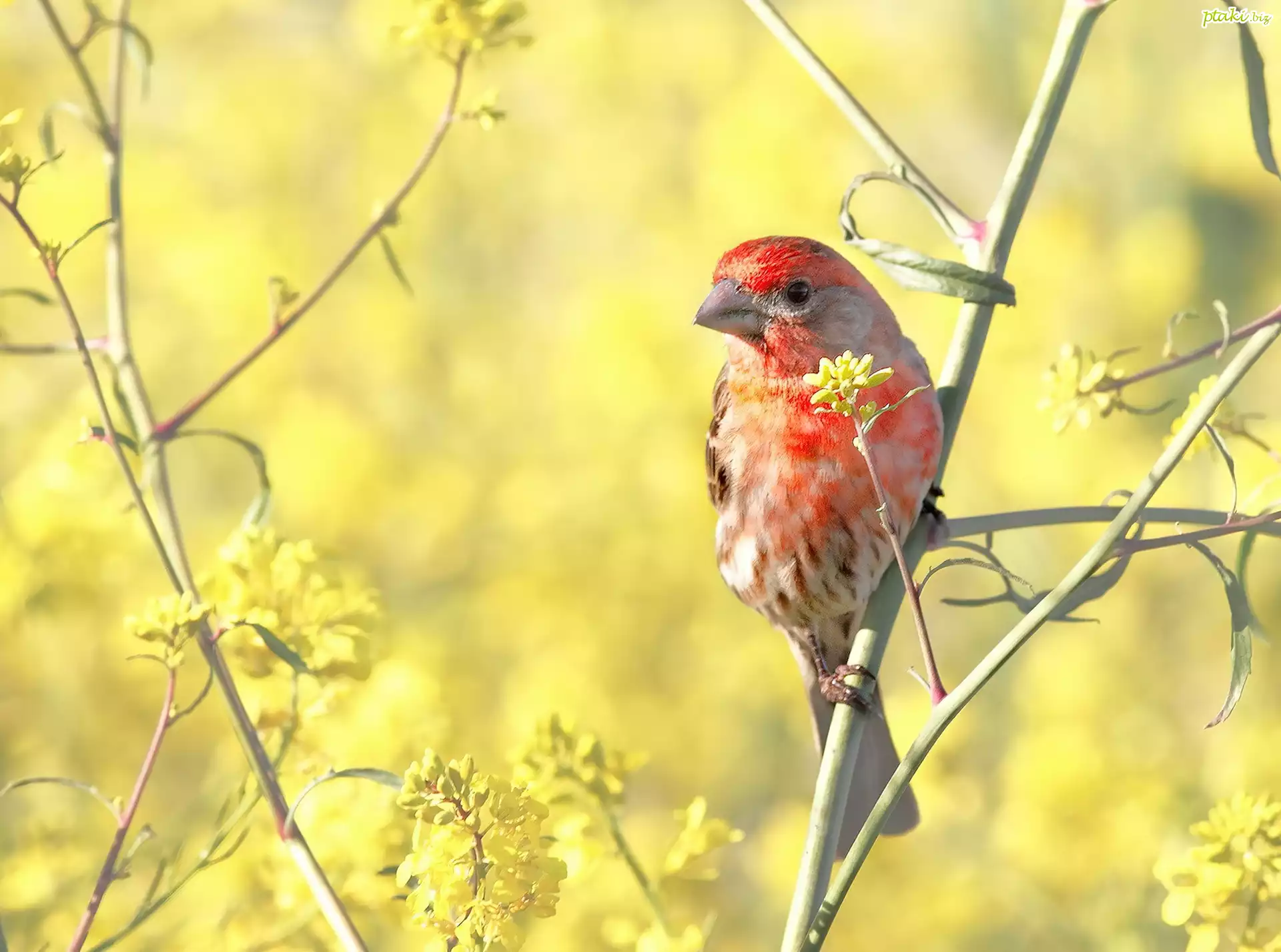 Ptaszek, Gałązki, Krzewu, Kwiatki