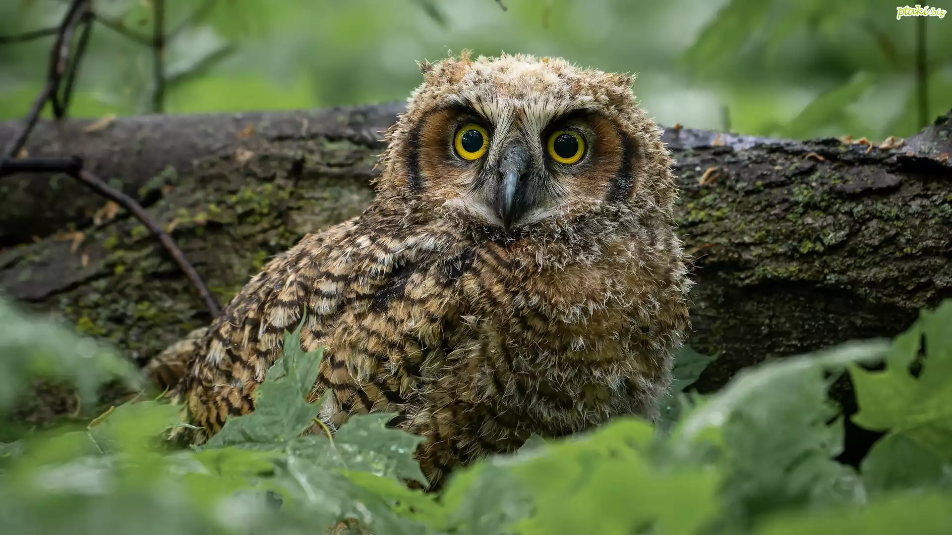 Ptak, Sowa, Młody, Puchacz wirginijski, Powalone, Drzewo