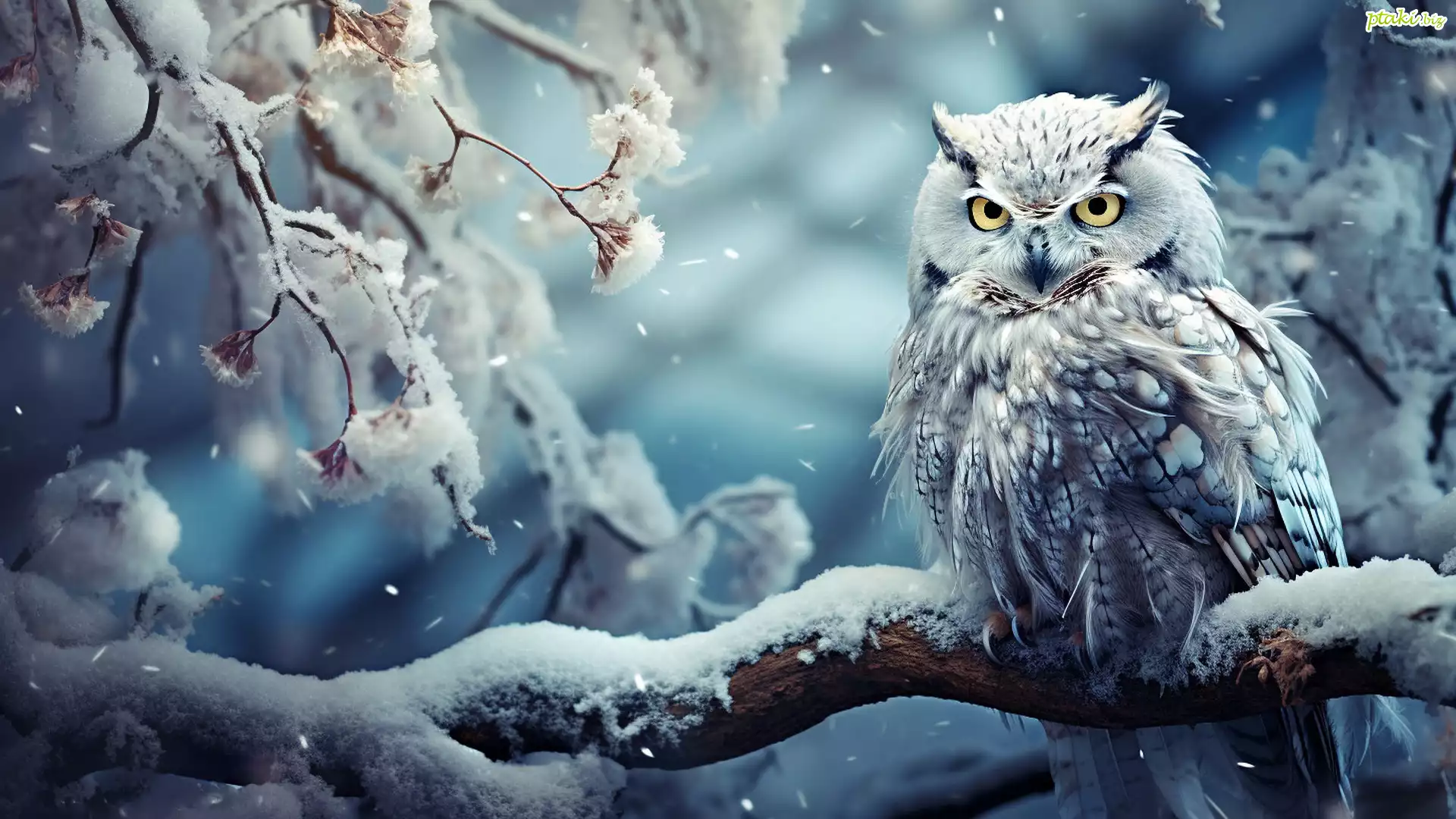 Zima, Ptak, Sowa, Puchacz, Konar, Gałęzie, Śnieg