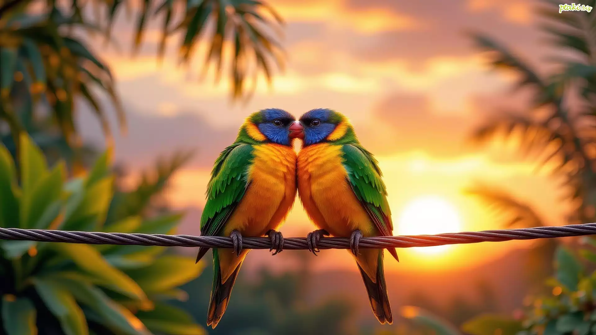 Dwie, Papugi, Drut, Rośliny, Grafika AI