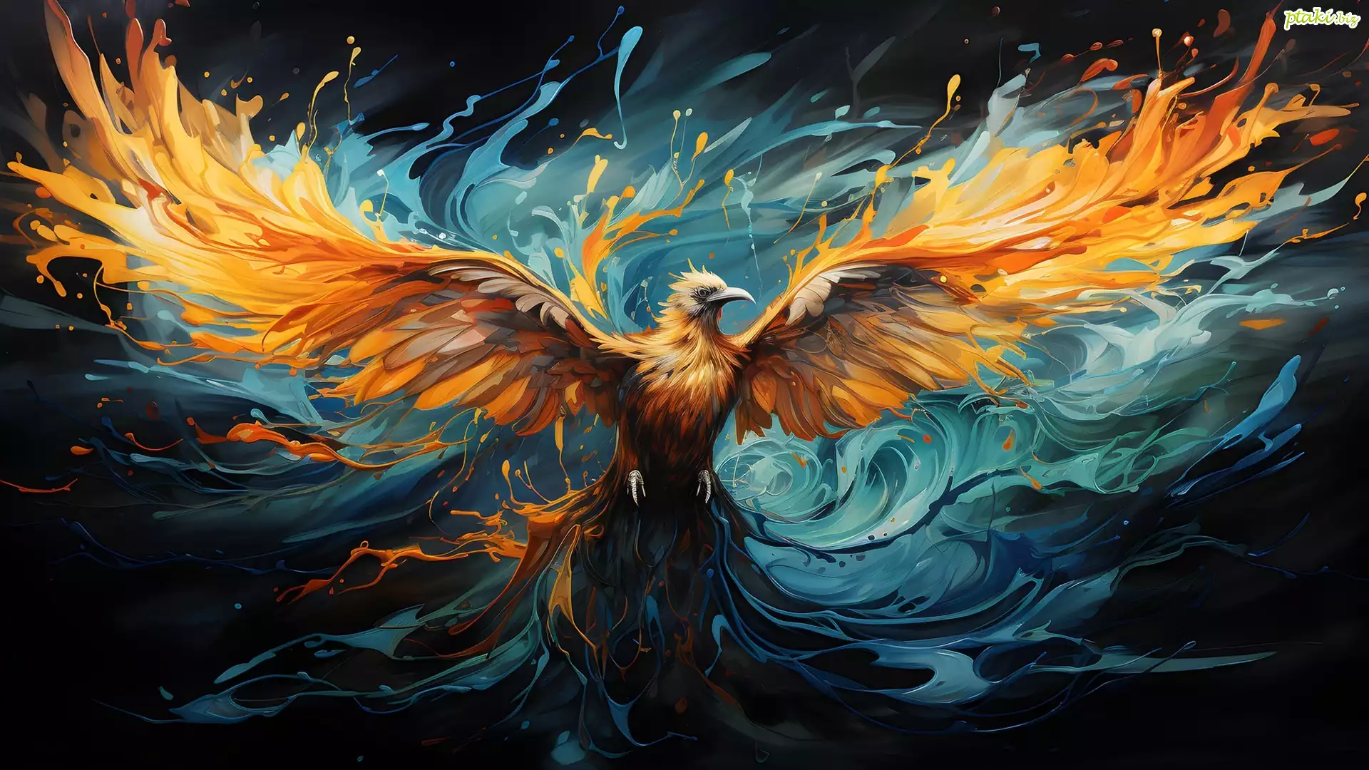 Grafika, Ptak, Feniks, Rozpostarte, Żółte, Skrzydła