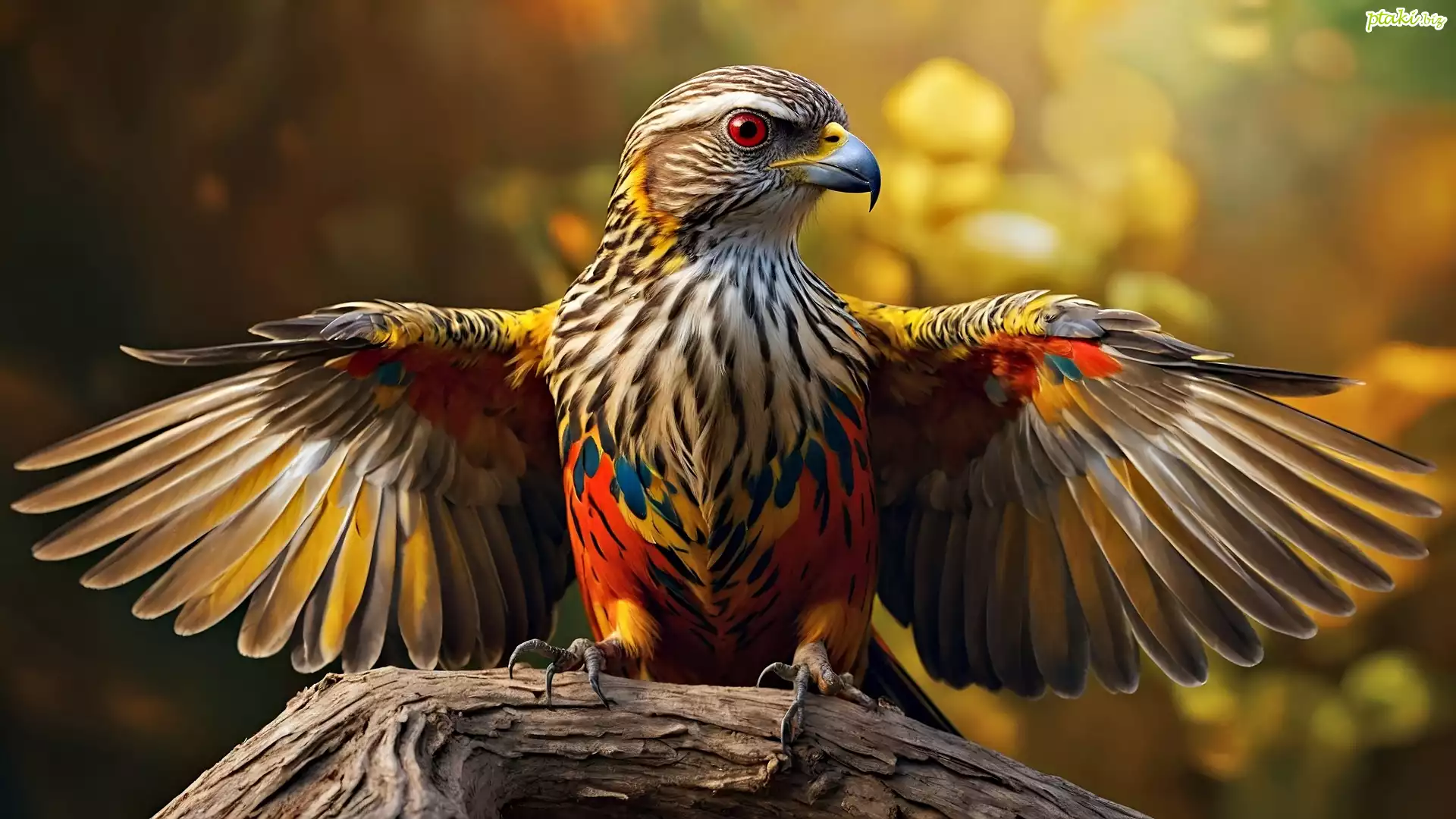 Ptak, Rozpostarte, Skrzydła, Konar, Grafika
