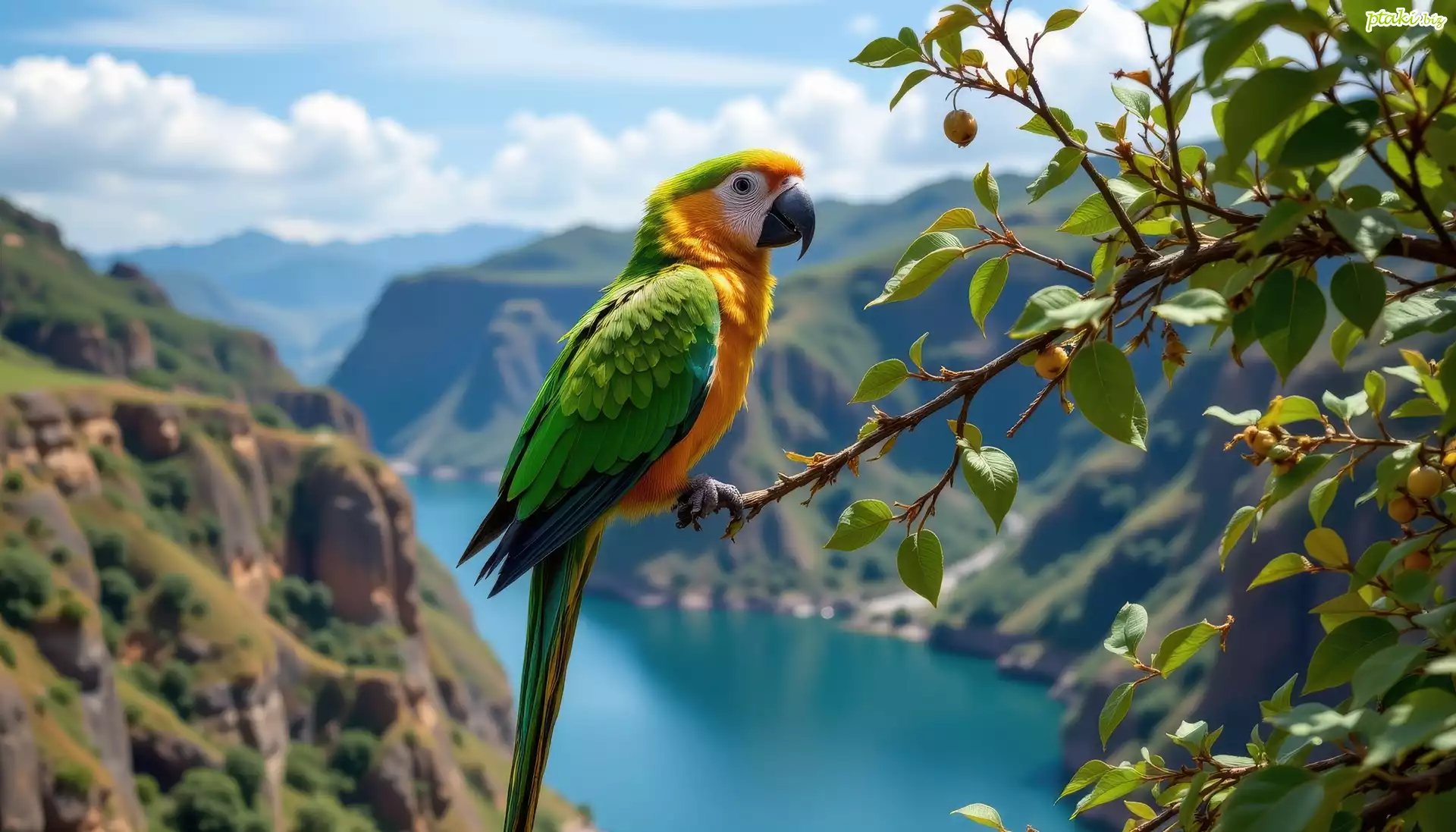 Papuga, Ara, Gałąź, Rzeka, Grafika AI