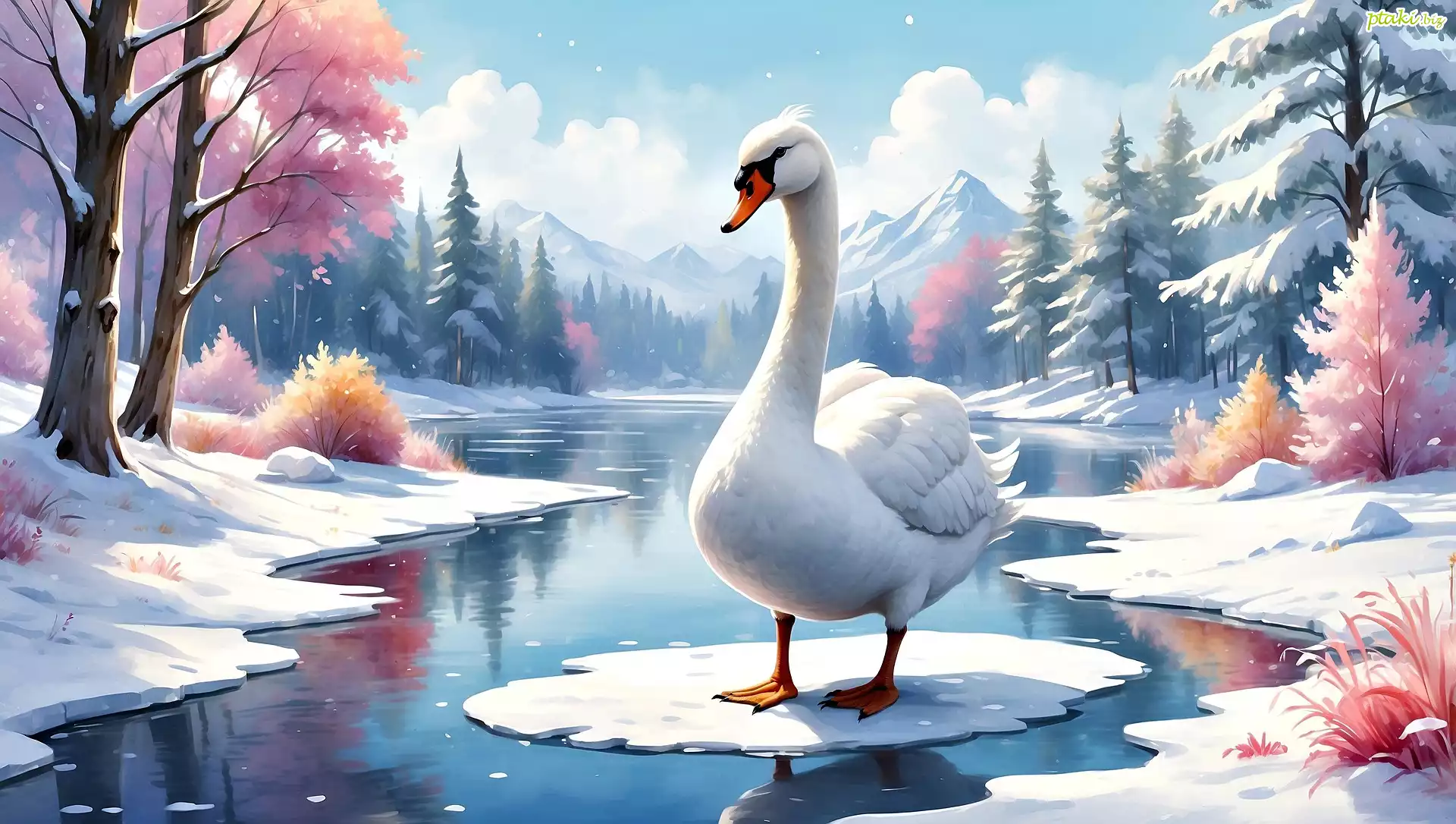 Łabędź, Ptak, Zima, Rzeka