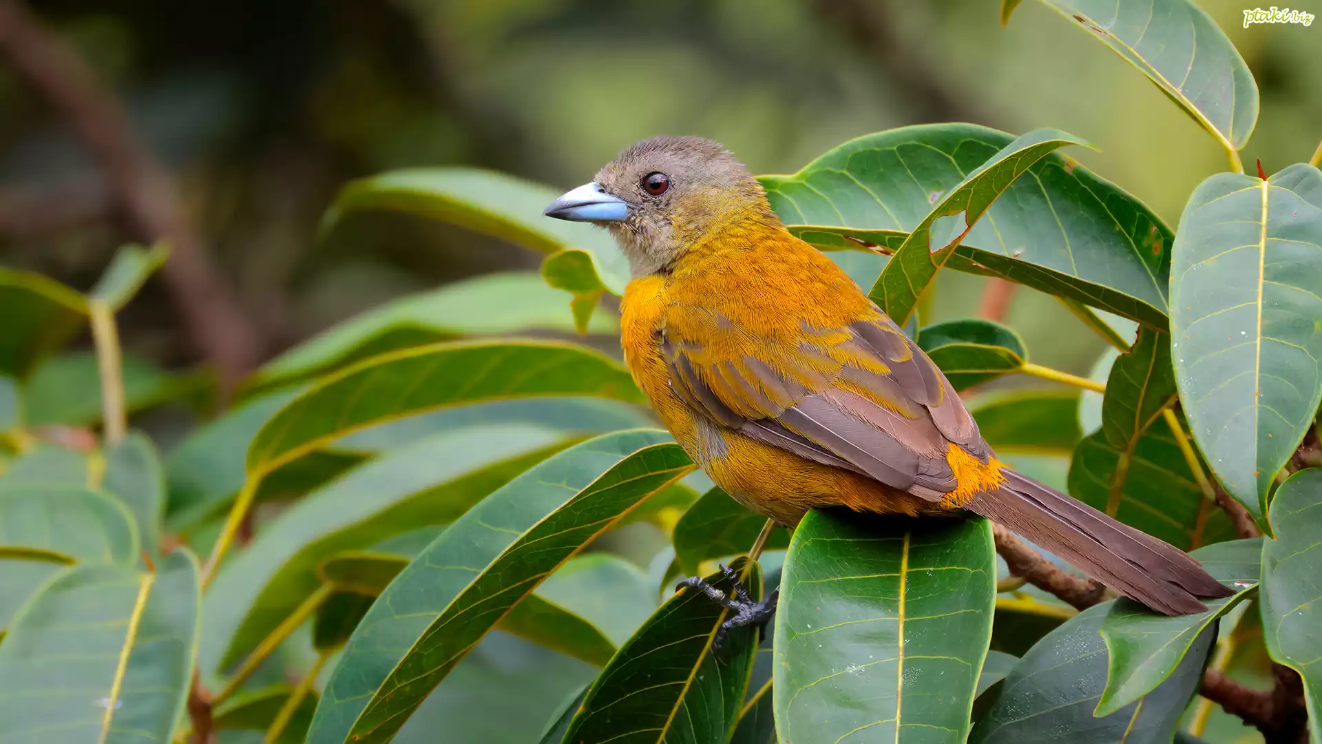 Ptak, Tanager szkarłatny, Samica, Liściaste, Gałązki
