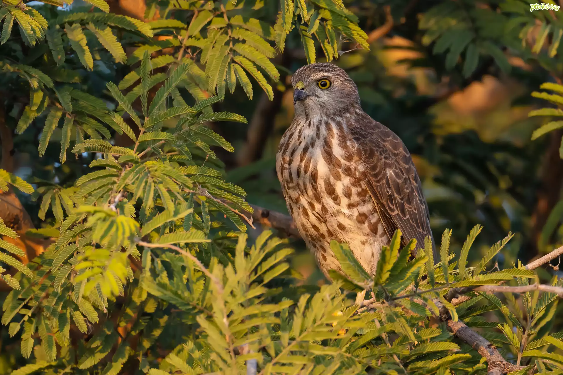Ptak, Krogulec mały, Shikra, Gałęzie, Liście