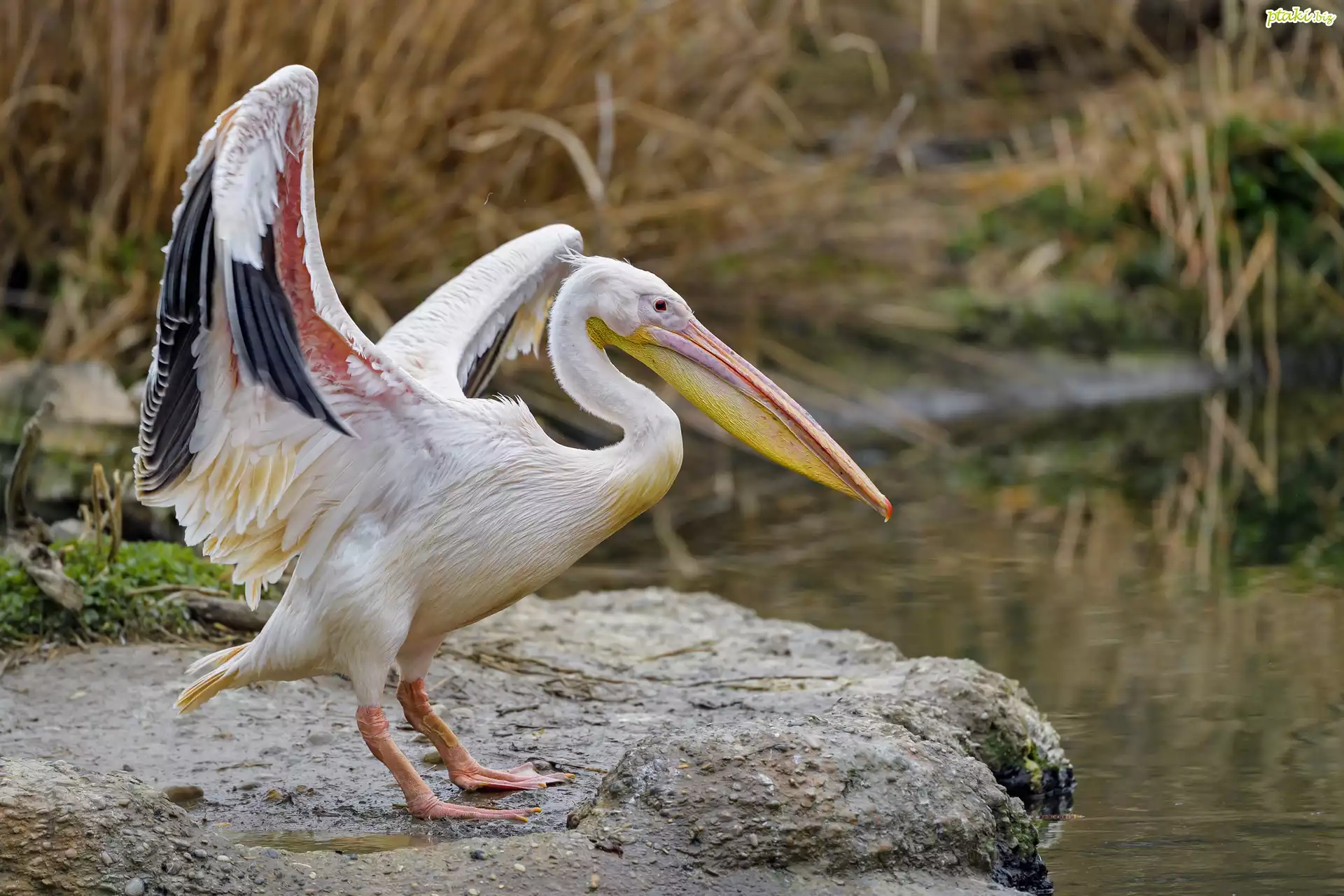Pelikan, Rozpostarte, Skrzydła, Skała