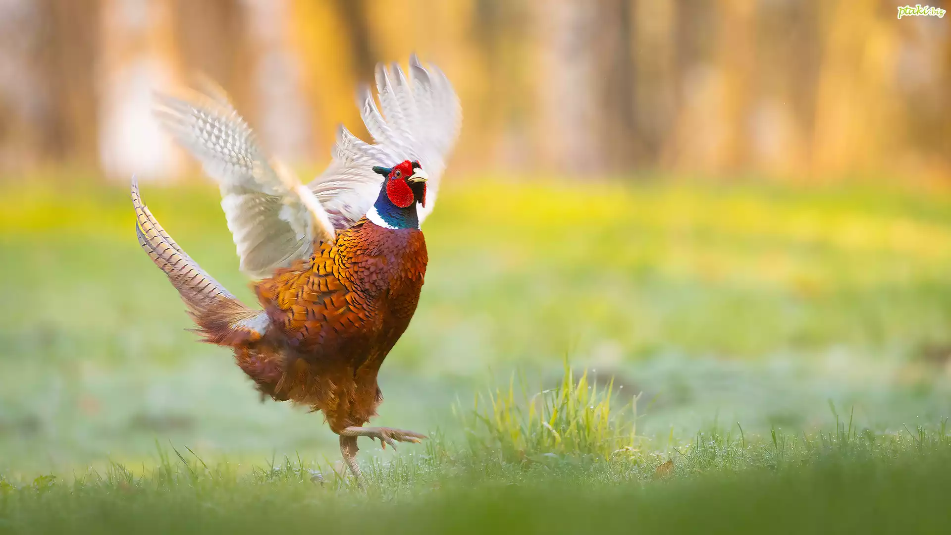 Bażant, Trawa, Rozpostarte, Skrzydła