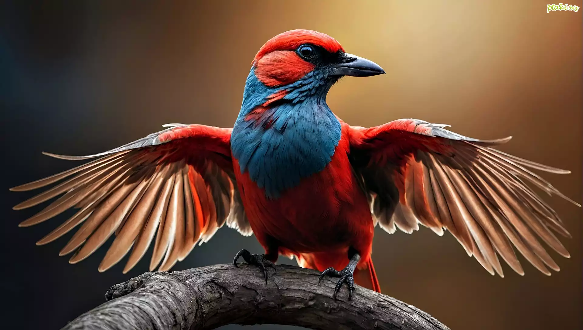 Ptak, Kolorowy, Rozpostarte, Skrzydła, Konar, Drzewo, Grafika