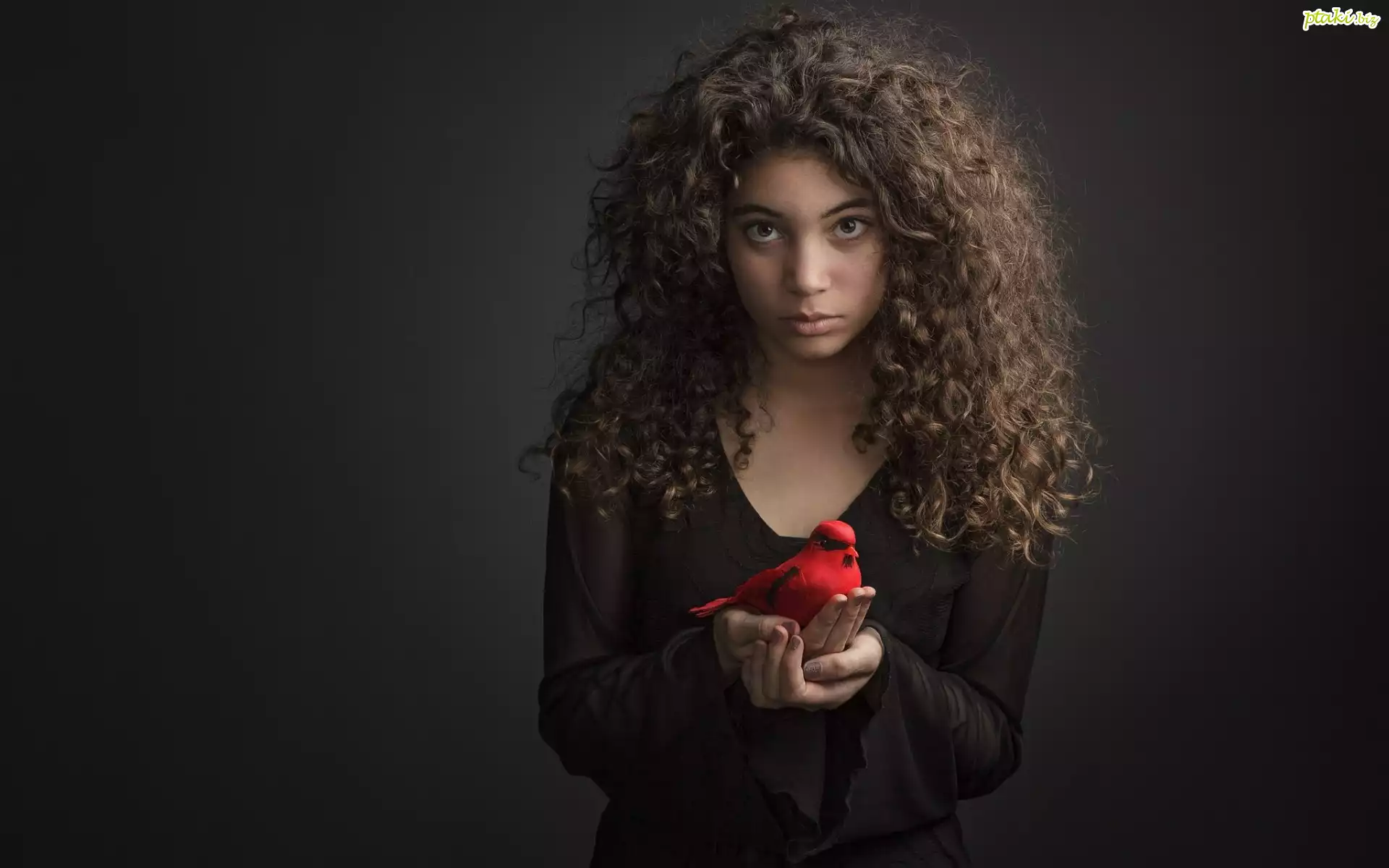 Smutna, Dziewczyna, Makijaż, Piękne, Włosy, Ptaszek