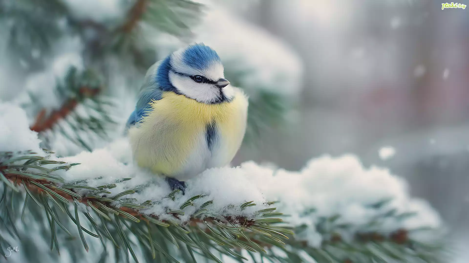 Sikorka, Modraszka, Gałązki, Śnieg, Grafika AI