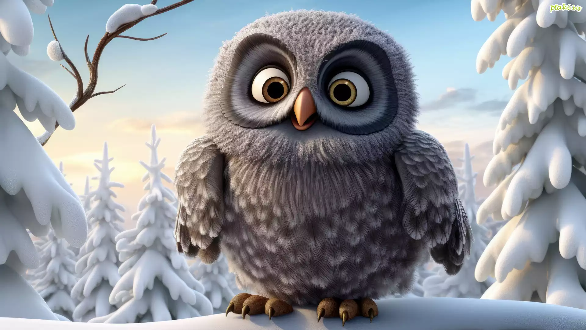 Sowa, Śnieg, Drzewa, Zima, 2D