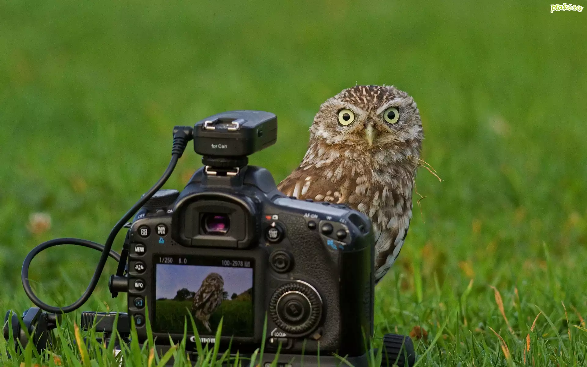 Sowa, Łąka, Aparat, Fotograficzny