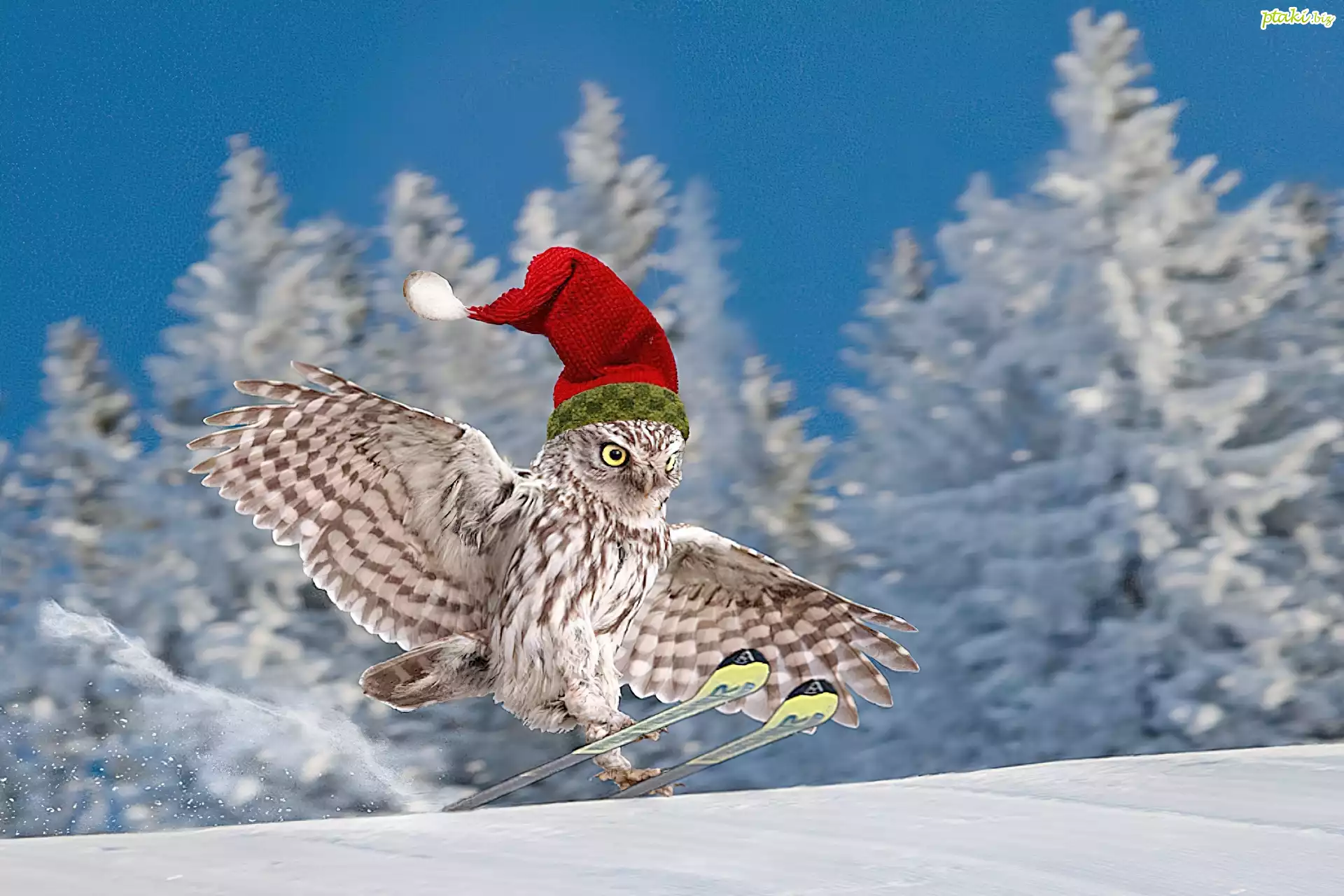 Sowa, Narty, Czapka, Zima