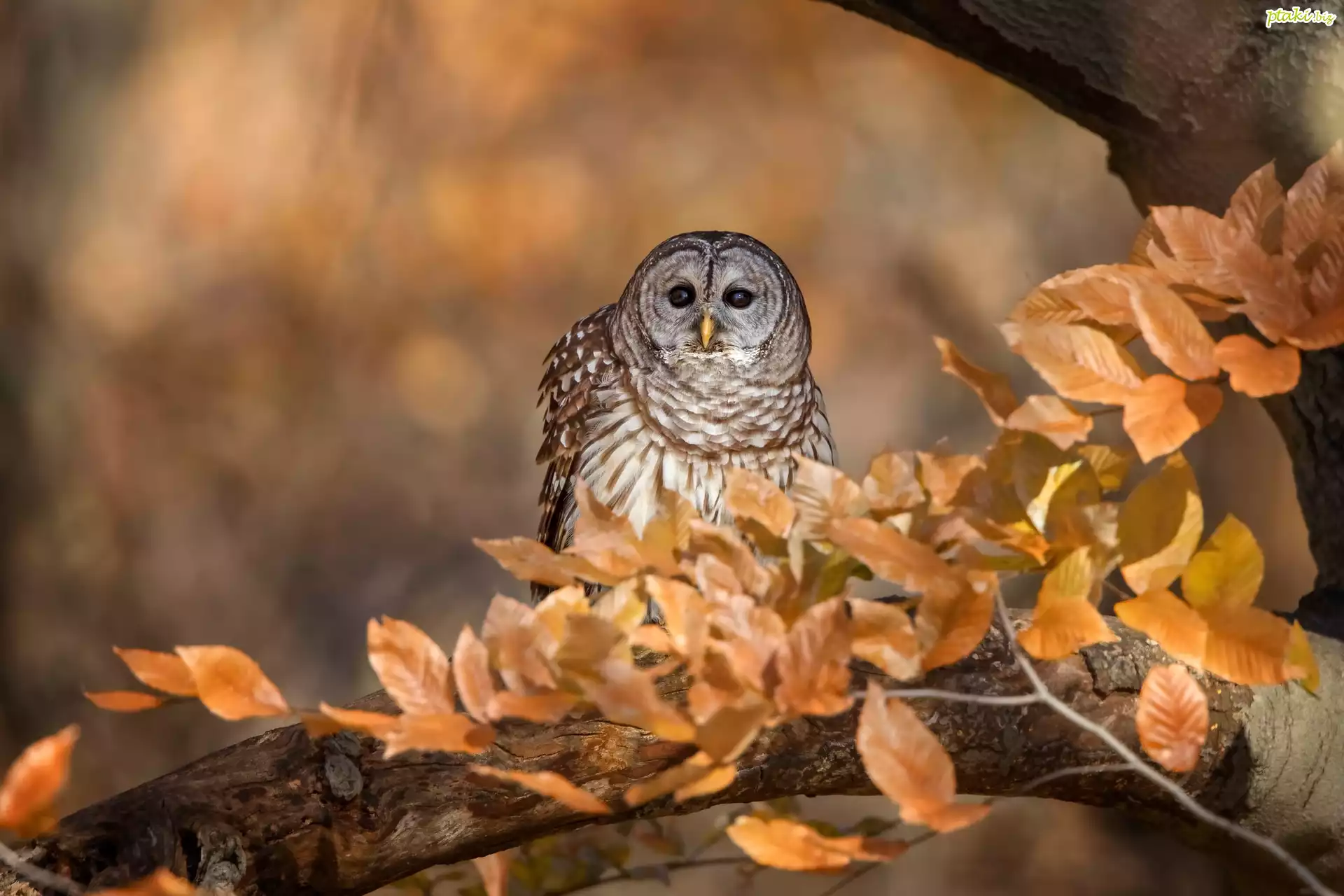 Sowa, Puszczyk, Gałąź, Liście