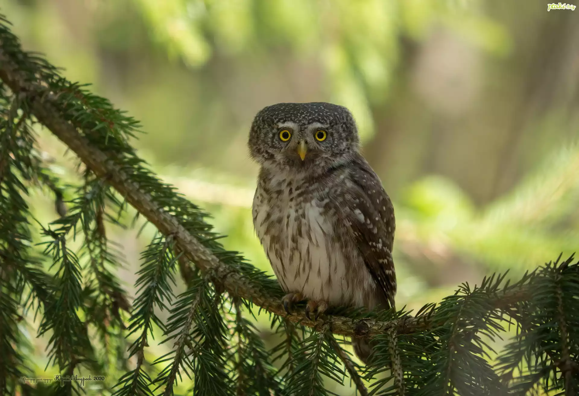 Sowa, Sóweczka zwyczajna, Gałąź, Świerk