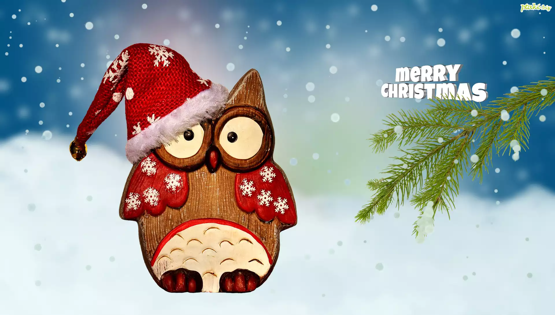 Sowa, Śnieg, Gałązka, Czapka, Merry Christmas