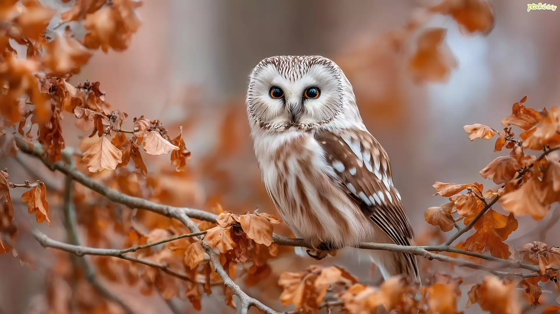 Sowa, Włochatka, Ptak, Drzewo, Gałęzie, Suche, Brązowe, Liście, Grafika, AI