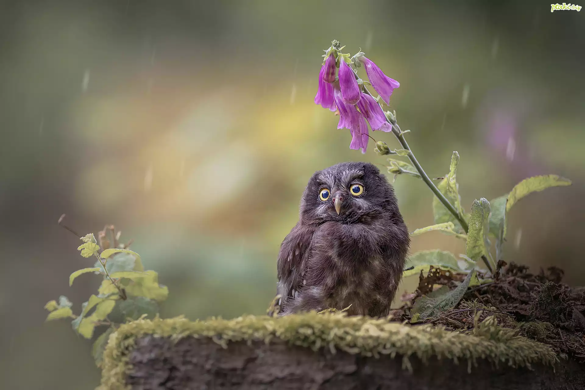 Sowa, Syczek białobrewy, Kwiatek, Rośliny