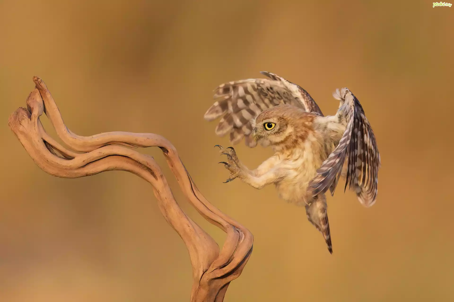 Ptak, Sowa, Pójdźka, Lot, Konar