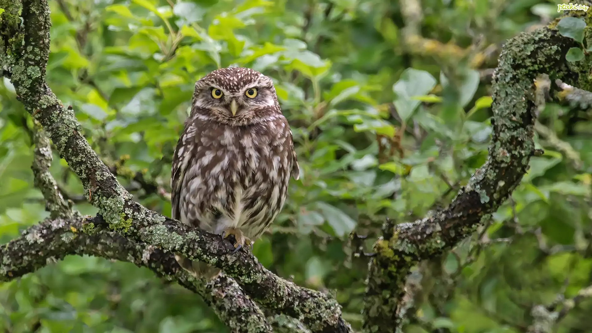 Ptak, Sowa, Pójdźka, Gałęzie, Liście