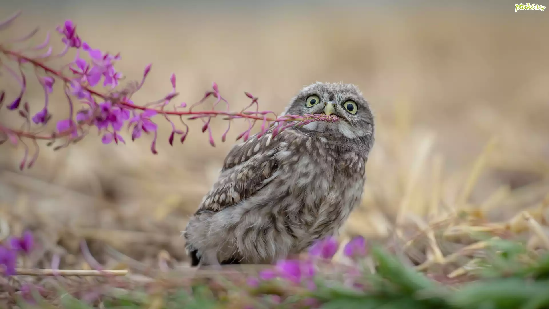 Sowa, Pójdźka, Różowy, Kwiat, Rozmyte, Tło