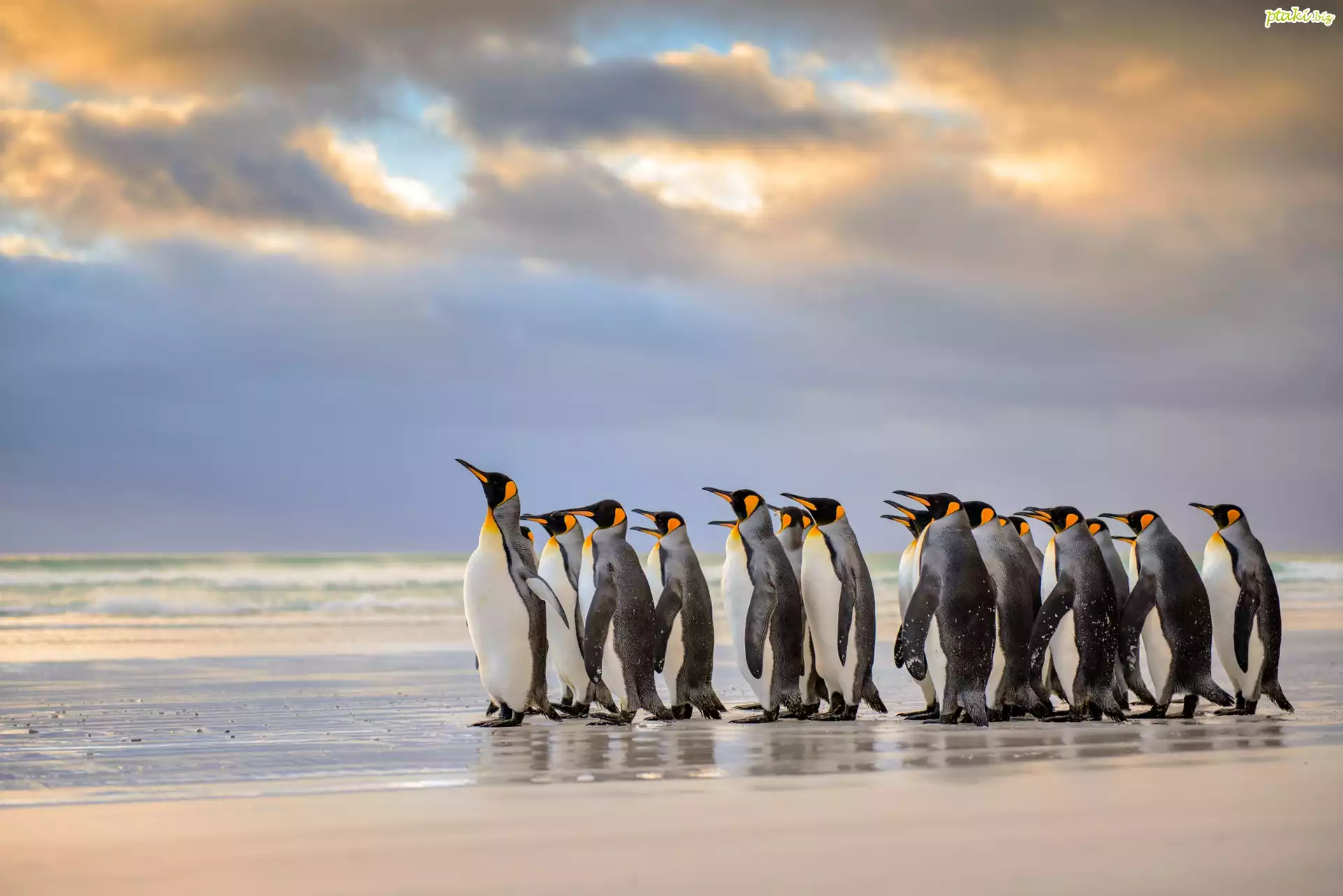Stado, Pingwinów, Plaża, Rozmyte, Tło