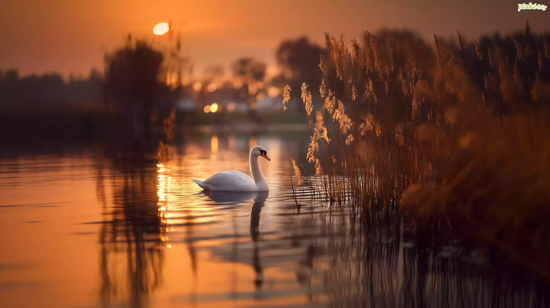 Łabędź, Ptak, Jezioro, Szuwary, Grafika AI