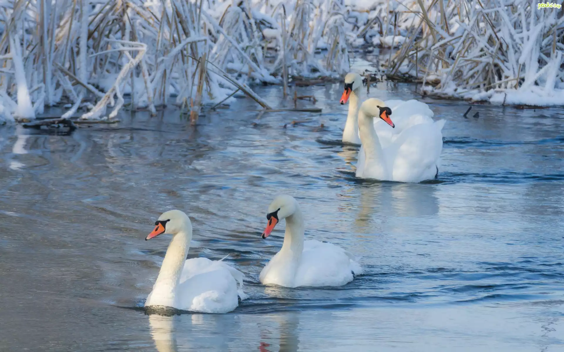 Rybow, Las Kaczki, Woda Orze, nieg, Gry G Biaoczelna, Trawa, Suche, Licie uszczak, Papieski Dzikie, Gsi Sowa Kolorowa, Ara Kobieta, lubny, Bukiet, Ptaki