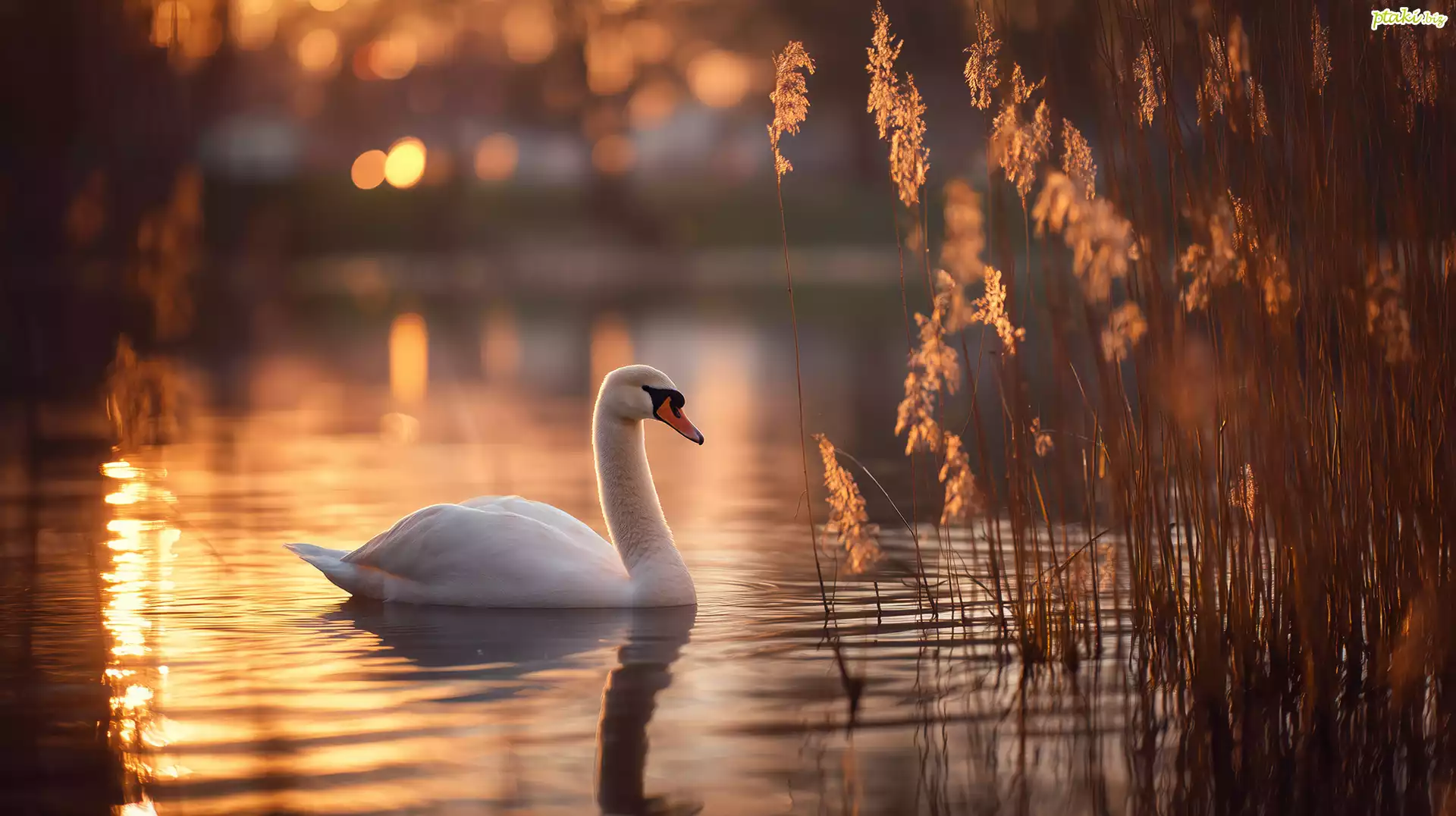 Łabędź, Szuwary, Woda, Grafika AI