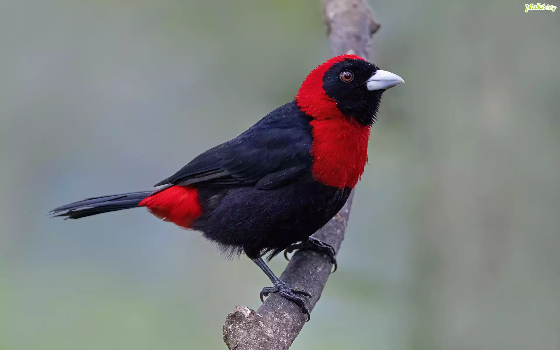 Ptak, Tapiranga maskowa, Zbliżenie, Gałąź