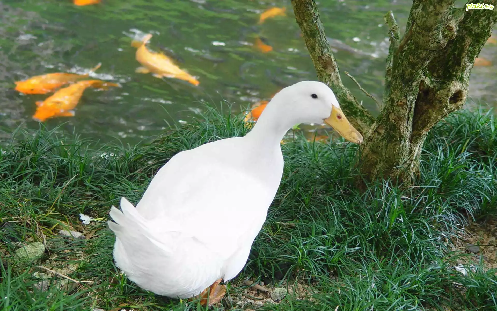 Kaczka, Trawa, Woda