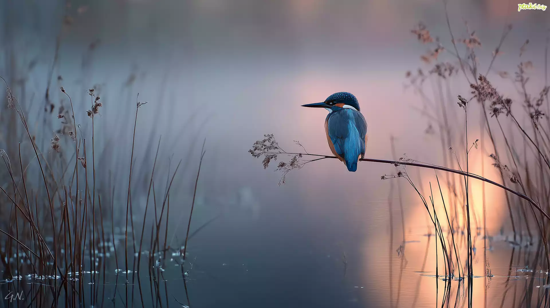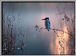 Zimorodek, Trawy, Jezioro, Grafika AI