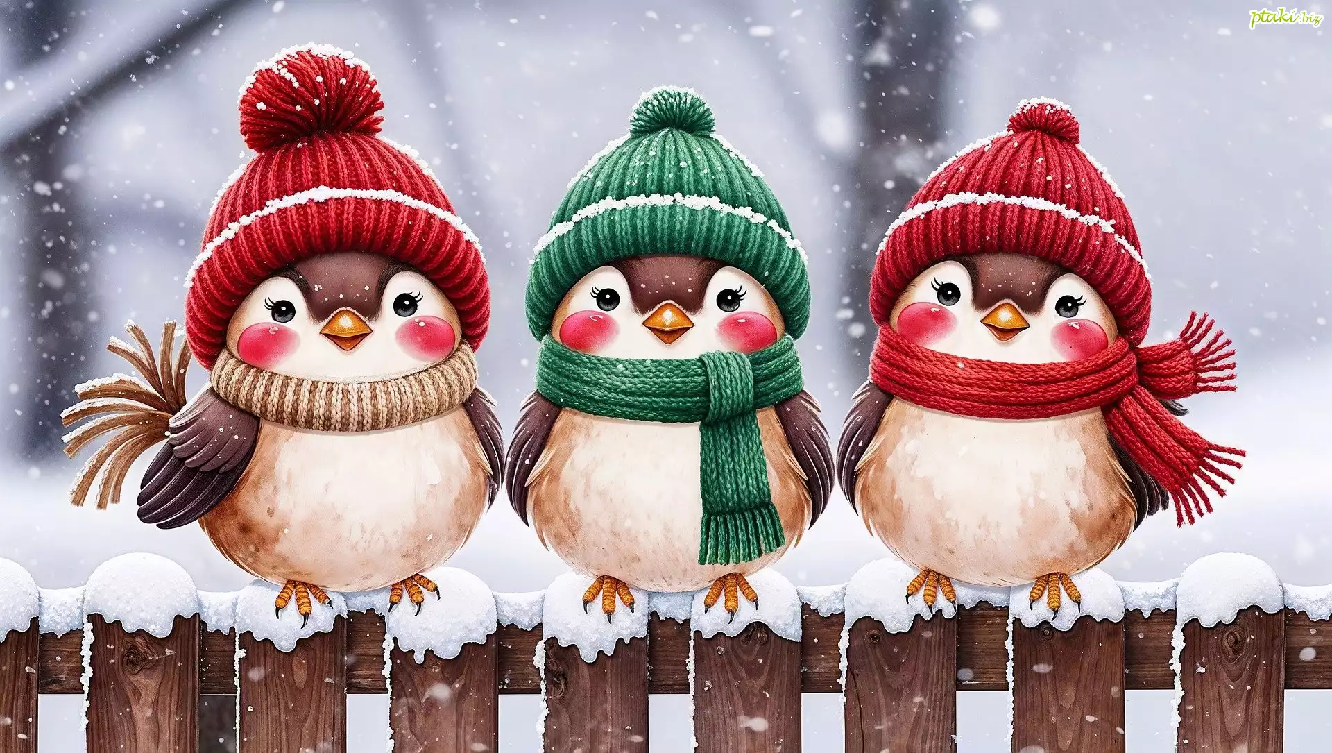 Zima, Trzy, Ptaki, Płot, Grafika